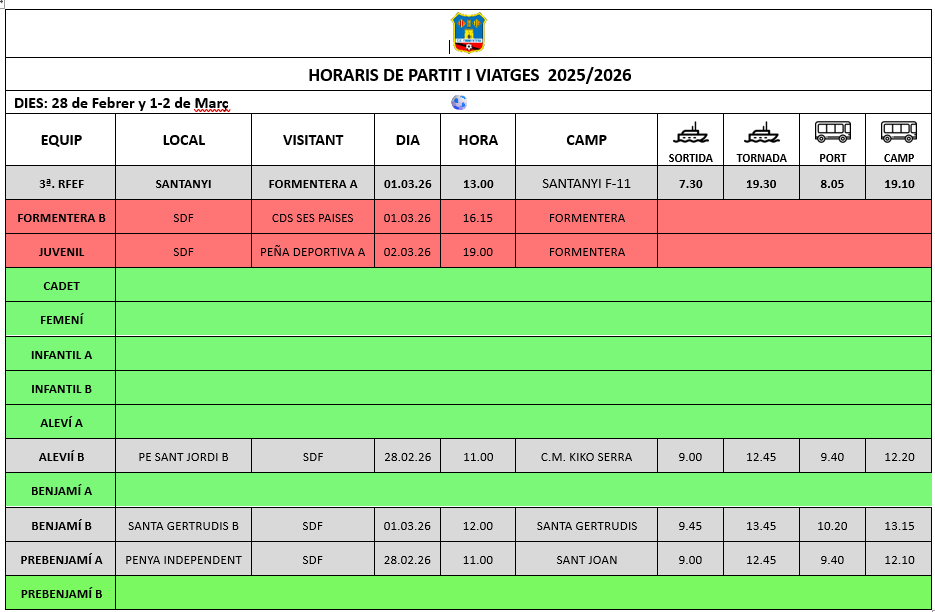 SD Formentera HORARIS I DESPLAÇAMENTS Horaris del cap de setmana Et presentam el nou canal de whastap sobre informació del club. Accedeix al nou canal amb el codi QR d’aquesta imatge o bé al següent enllaç: https://whatsapp.com/channel/0029Vb85d7d2kNFtI1hjnN1u