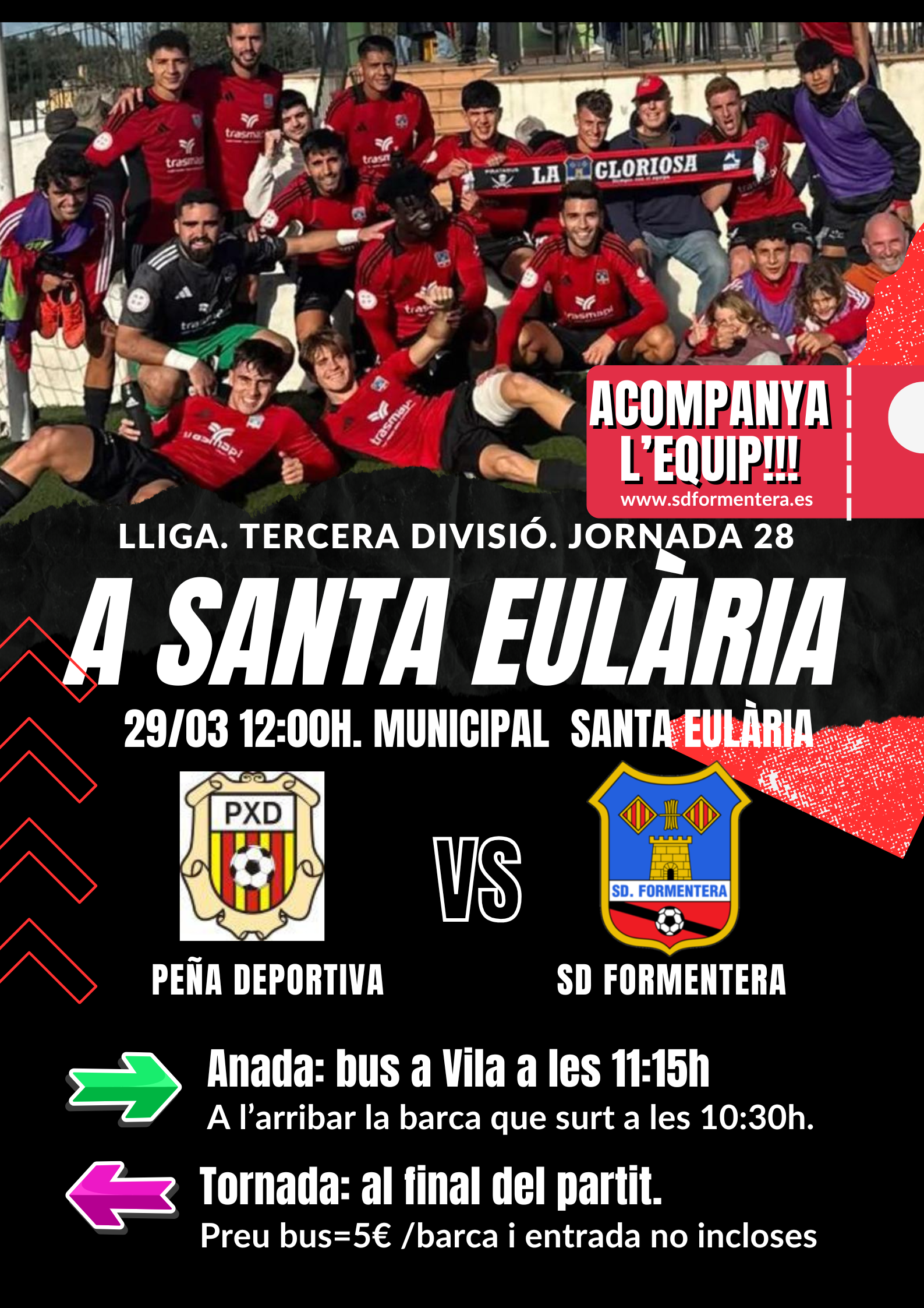 Tornada: BUS del camp de la Peña Deportiva fins a Estació Marítima al final del partit (aprox. a les 14h)