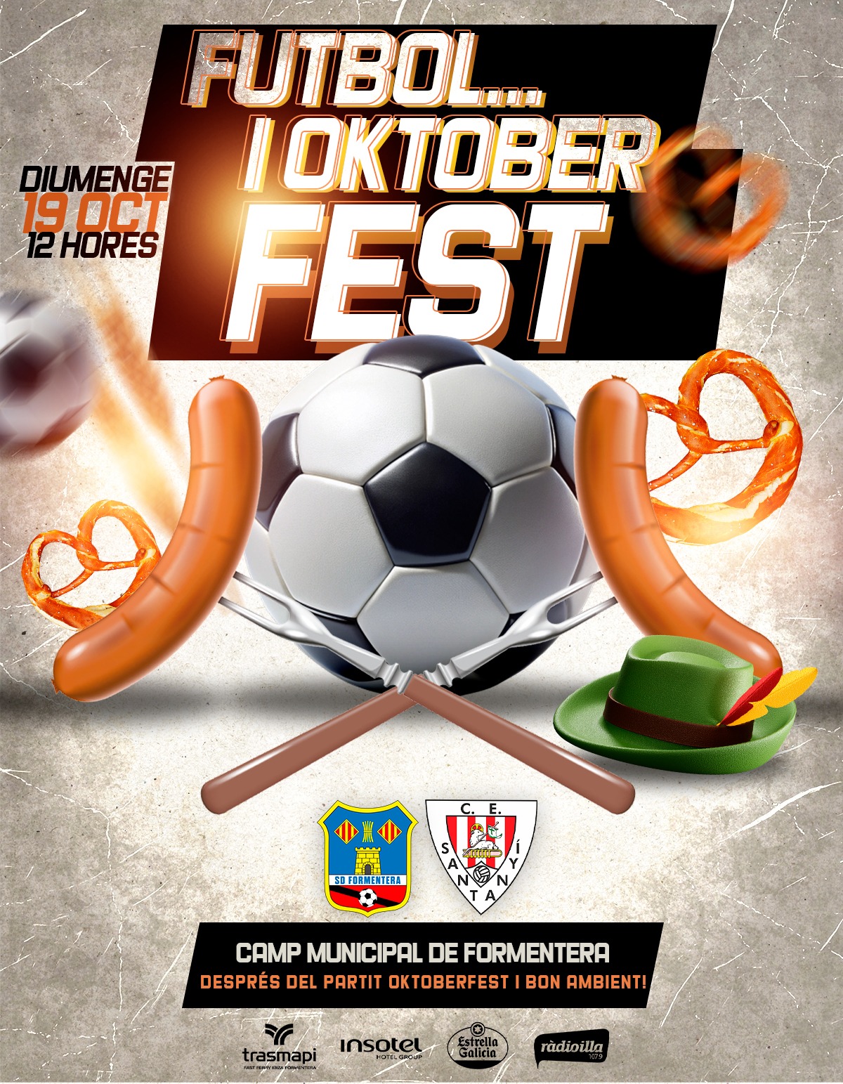 El proper diumenge 19 d’octubre a les 12, coincidint amb el partit de 3a divisió entre la SD Formentera i el CE Santanyí, viurem un dia de futbol i festa Oktober Fest al camp municipal de futbol.